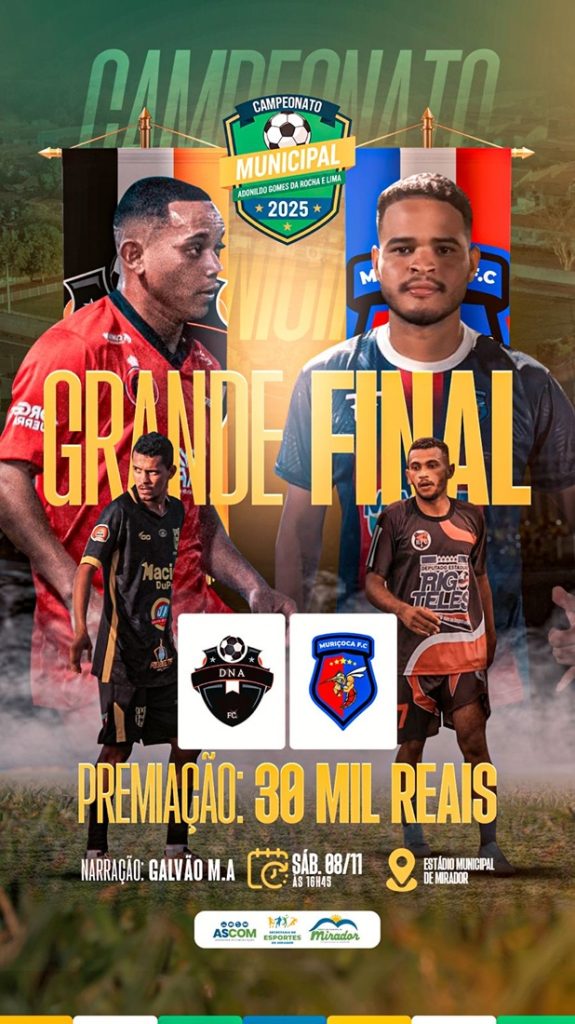 Uma grande festa deve marcar a final do Campeonato Municipal de Futebol de Mirador – edição 2025. O duelo acontece sábado (8) no Estádio Municipal, com programação iniciando às 16h45 com o jogo DNA x Muriçoca. A disputa de terceiro lugar está marcada para a sexta-feira as 18hs, envolvendo Ibipira e União FC.