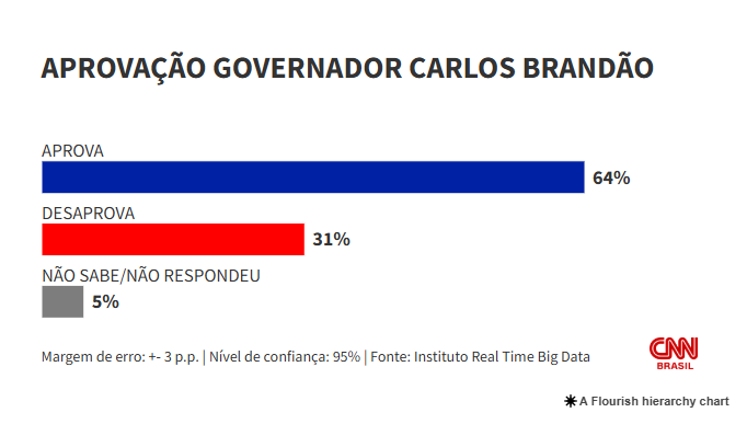 A gestão do governador do Maranhão, Carlos Brandão (PSB), é aprovada por 64% da população do estado, segundo pesquisa divulgada nesta quarta-feira (1) pelo Instituto Real Time Big Data, a mesma que analisou o cenário eleitoral para o governo estadual em 2026.