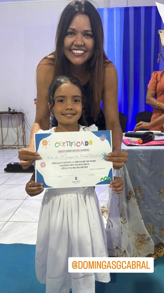 A Prefeitura de Mirador parabeniza todos os pequenos formandos, os profissionais da educação e as famílias, que fazem parte dessa linda etapa na vida das nossas crianças”, Domingas Cabral.