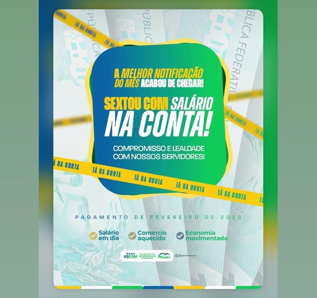 A Prefeitura informa que o pagamento do salário referente ao mês de fevereiro já está disponível na conta dos servidores. Não importa o tamanho do mês, a gestão de Domingas Cabral segue trabalhando com responsabilidade, compromisso e lealdade, valorizando quem contribui diariamente para o desenvolvimento do município.